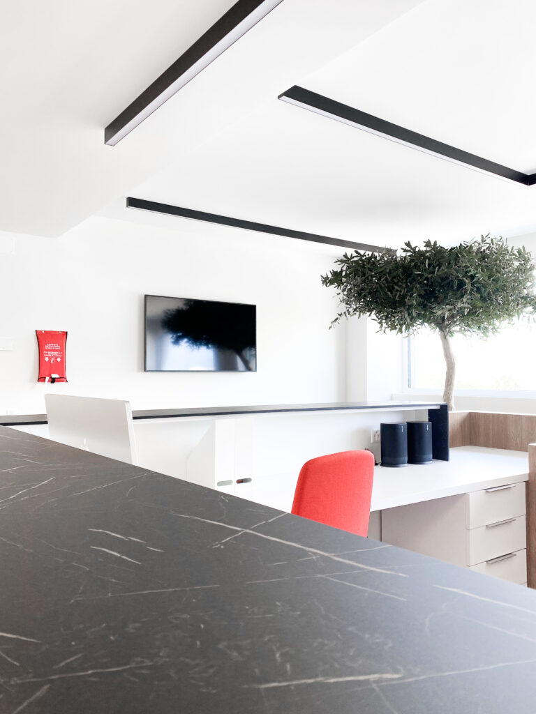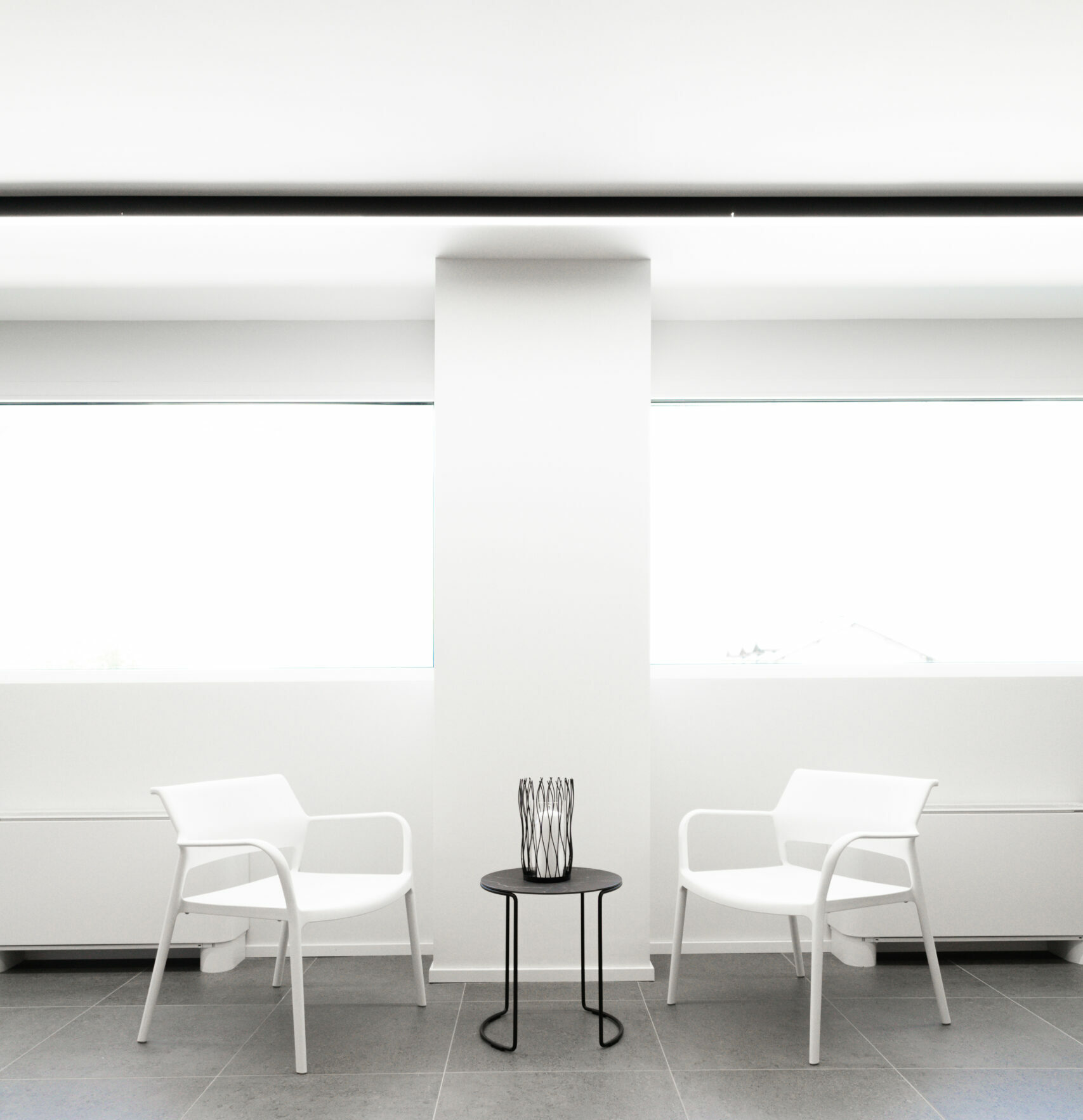 Modular system for direct, diffused and/or accent lighting, consisting of hollow profiles made from 66×40 mm painted or anodised extruded aluminium, with a predefined length or cut to measure, available in the following versions: wall-mounted, ceiling-mounted, suspended ,recessed with a super-slim edge trim, just 5 mm wide (61.5 x 40 mm) and trimless recessed. To be integrated with LED linear light sources, battens for T16 fluorescent lamps, projectors with built-in LED source and max 16A 3-circuit track modules for inclusion of projectors. Fluorescent battens, complete with 50/60 Hz 230/240 V electronic power supply, LED batten driver included. To be completed with side end caps with Light Proof system, opal white or microprismatic PC diffusing screen (in accordance with EN 12464-1), closing profiles, with a predefined length or cut to measure, or dark-light aluminium grille with high specular qualities and mounting brackets or suspension cables. IP40 protection rating.
