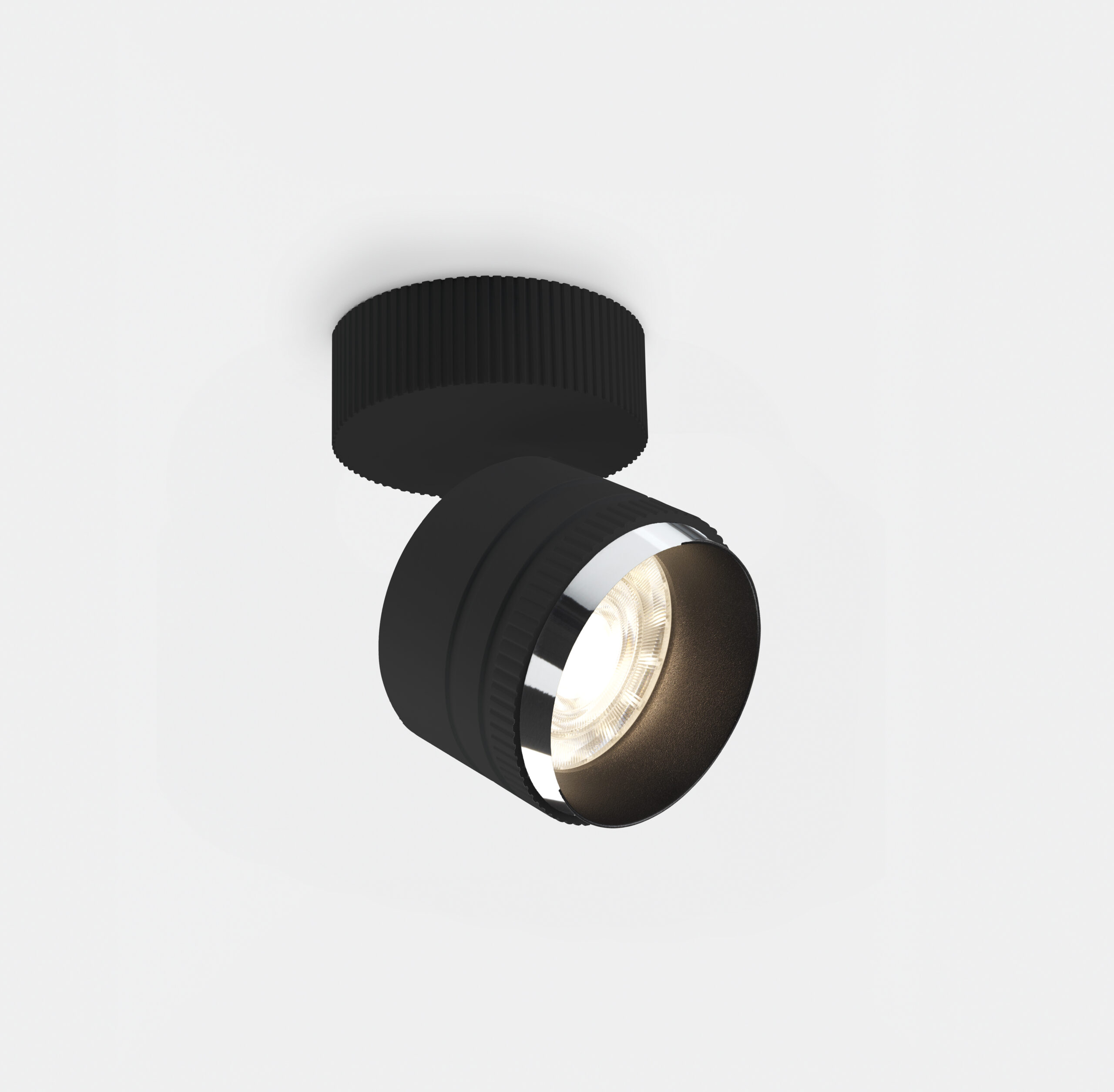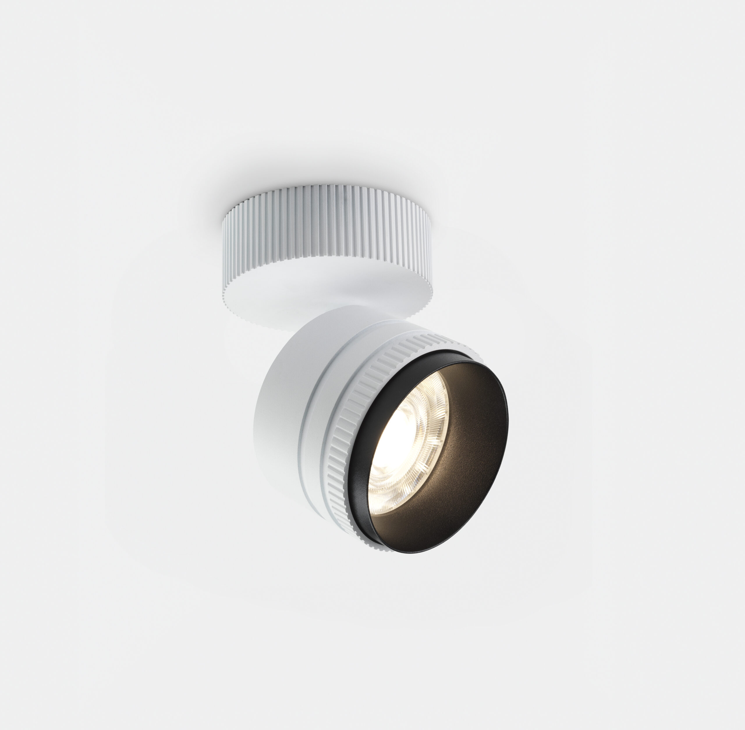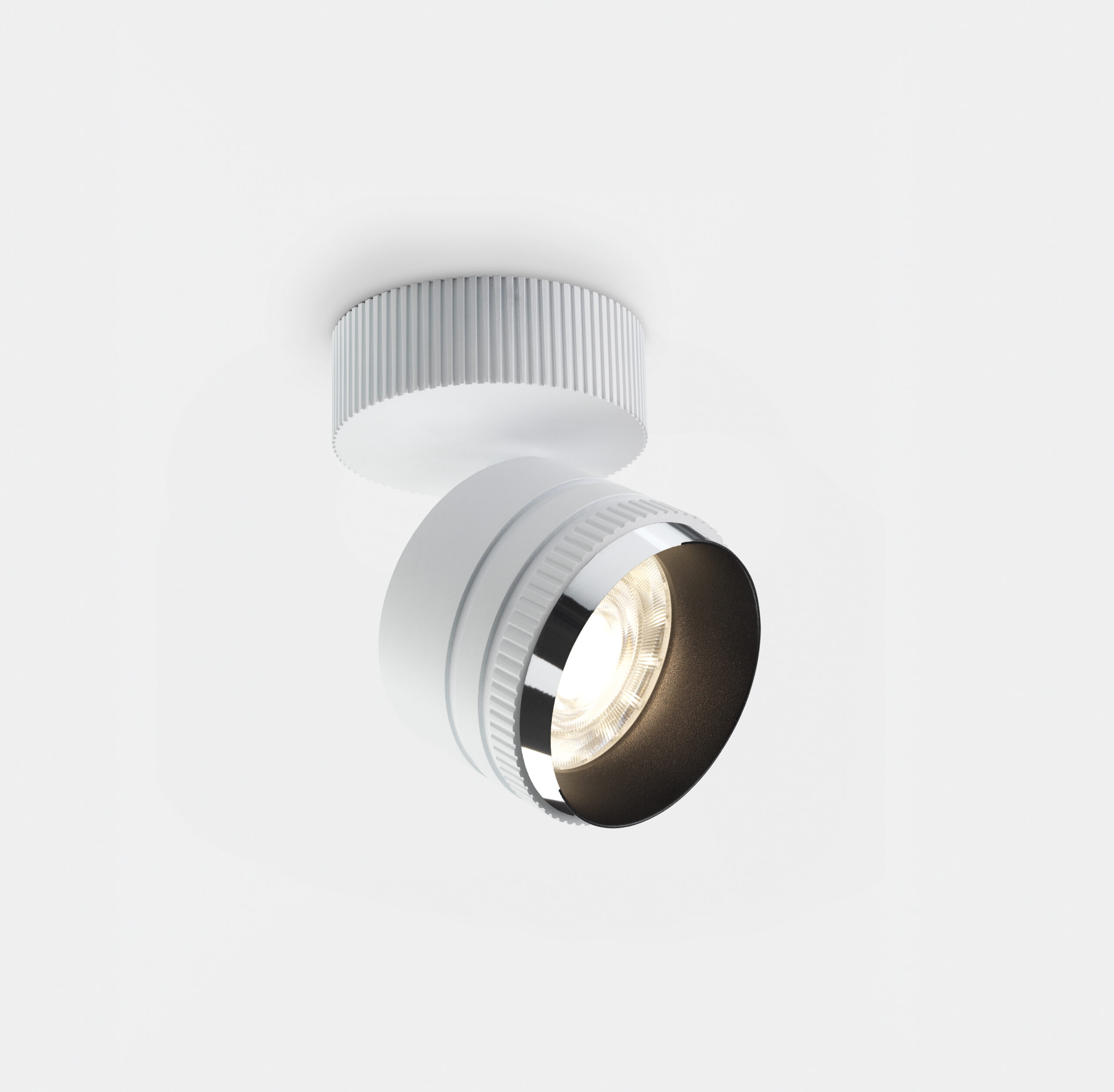 New collection of adjustable projectors by Mario Cucinella featuring integrated LED sources, ceiling or track mounted (Stucchi tracks) both for mains voltage or 48V. Iride consists of a body in painted die-cast aluminum and an interchangeable ring – in white, black or chrome finishing – for customization. Optical groups complete with high color rendering LEDs (CRI>90), lens, anti-glare housing and… read more