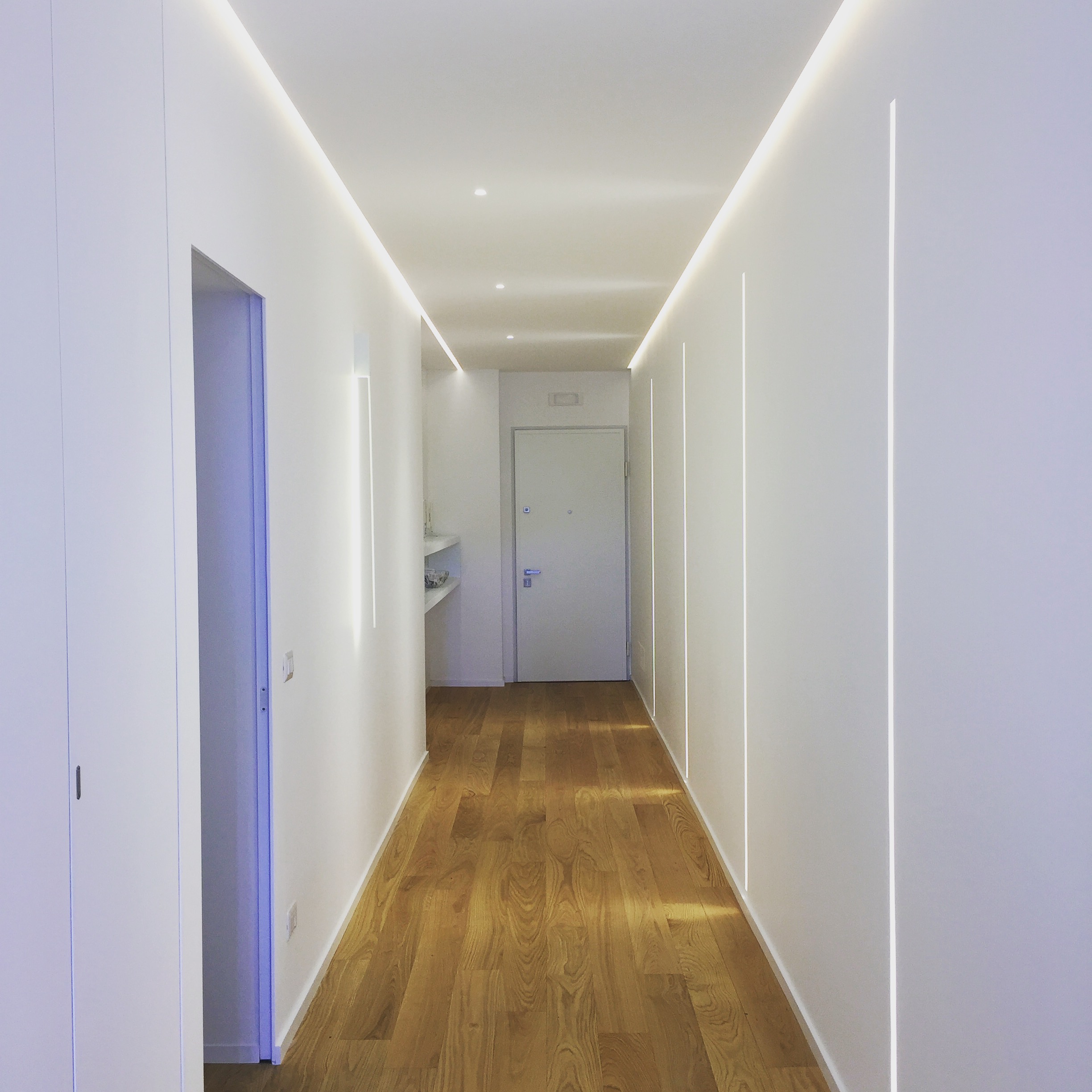 Modular system for direct, diffused and/or accent lighting, made of painted or anodised extruded aluminium empty profiles, available in predefined lengths or cut to measure. Available in wall-mounted, ceiling-mounted, suspended, trimless recessed or to be trimless-recessed in external and internal angles. For direct diffused lighting. Body in extruded aluminium. Painted or anodized finish. Complete with Light Proof system side end… read more