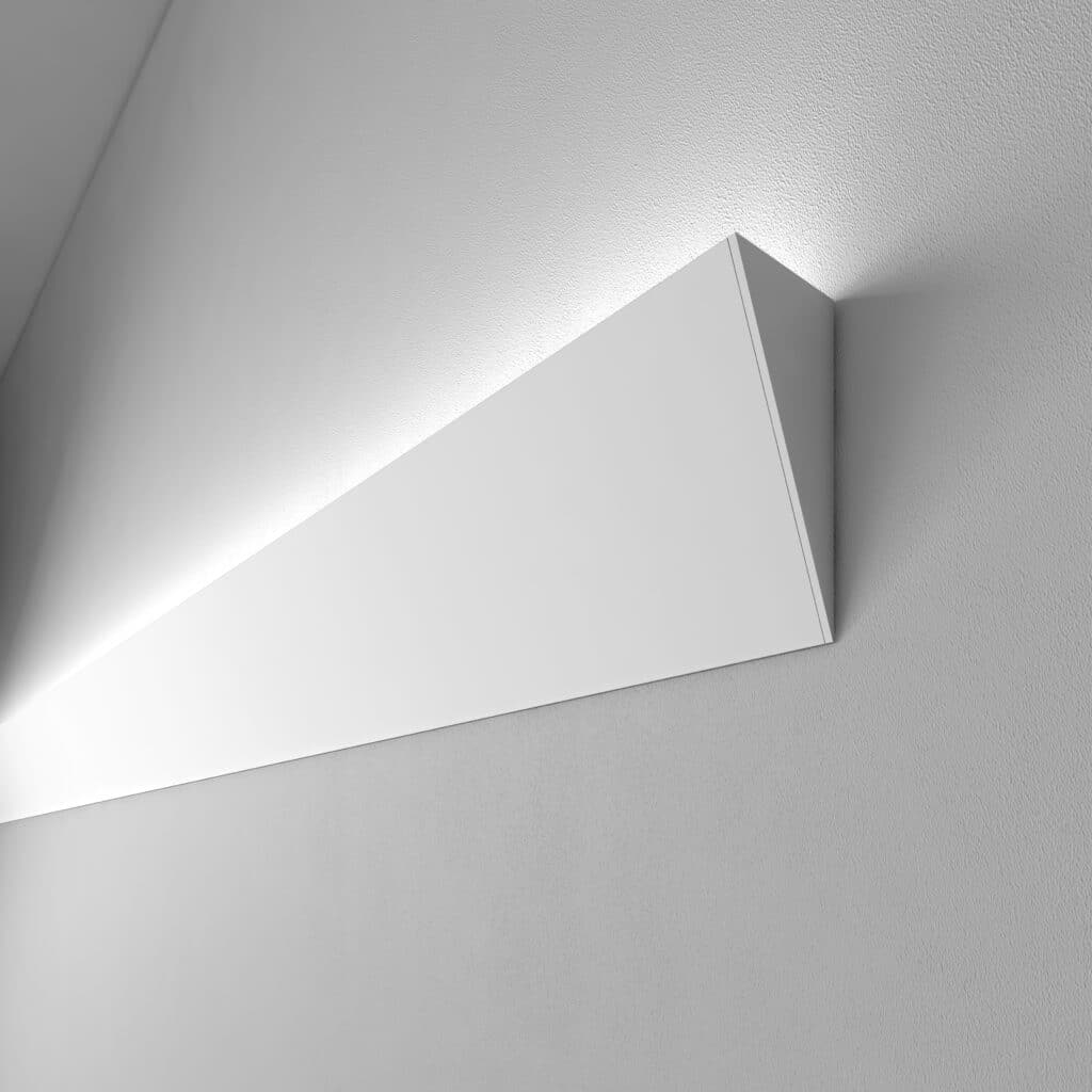 Apparecchi a parete per illuminazione diretta o indiretta, completi di sorgenti lineari LED. Da completare con alimentatore elettronico da installare remoto. Corpo in estruso di alluminio. Doppia possibilità di installazione: se fissati per il lato corto l’illuminazione è diffusa, se fissati per quello largo l’illuminazione è più radente. Completi di testate di chiusura laterali con sistema Light Proof , schermi diffondenti in PMMA opalino bianco e staffe di fissaggio. Grado di protezione IP40