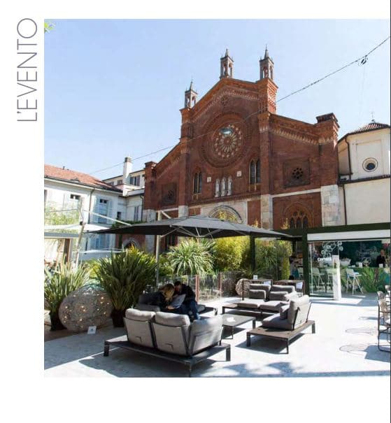 Lo spazio espositivo occupa tutta la piazza e i chiostri in una delle aree più estese di zona Brera Design District (circa 650 mq.)