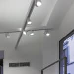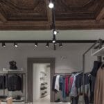 Con barre di lunghezza fino a 18mt totalmente prive di sospensioni si è ottenuto l’ottimo risultato voluto: illuminazione con proiettori a binario, illuminazione indiretta con un sistema a binario pertanto liberamente modificabile, ma totalmente privo di sospensioni.In riferimento alle diverse aree merceologiche del negozio lo studio Sgargi ha optato per due diversi colori del