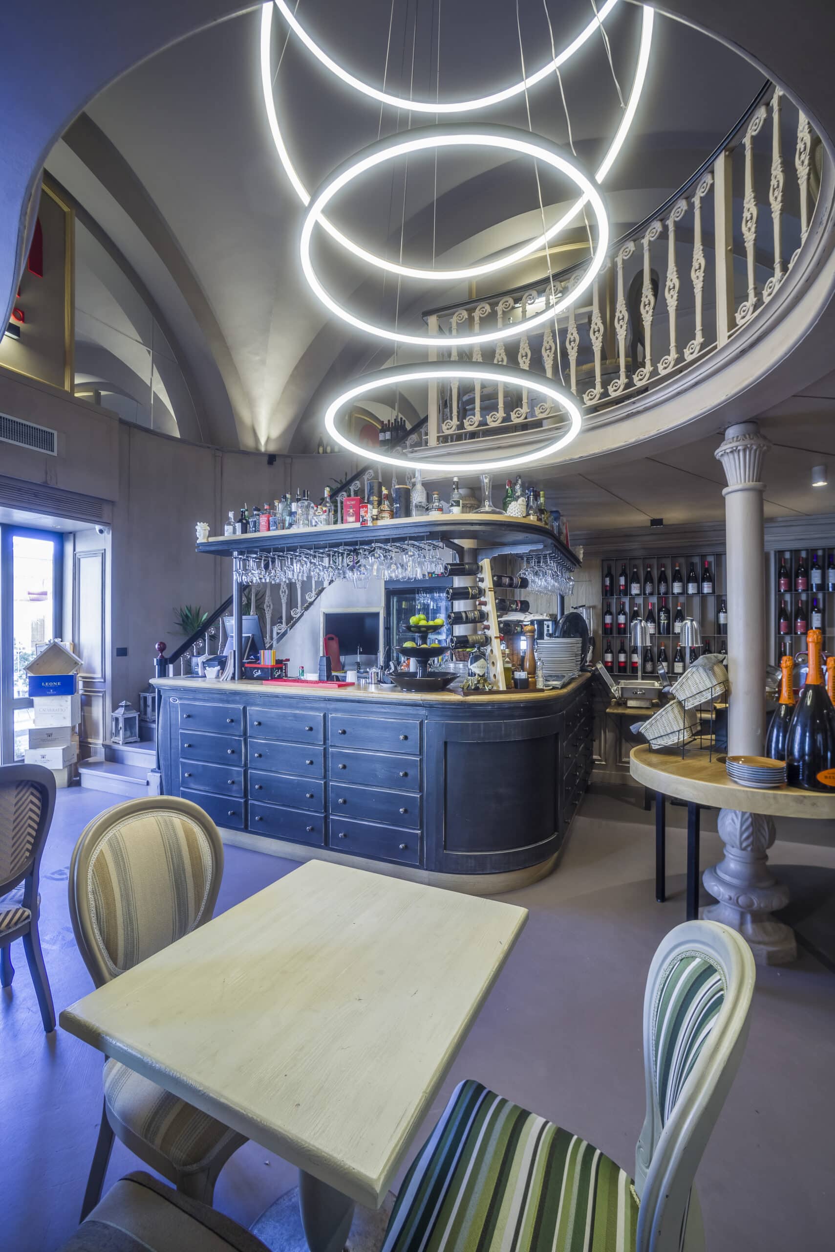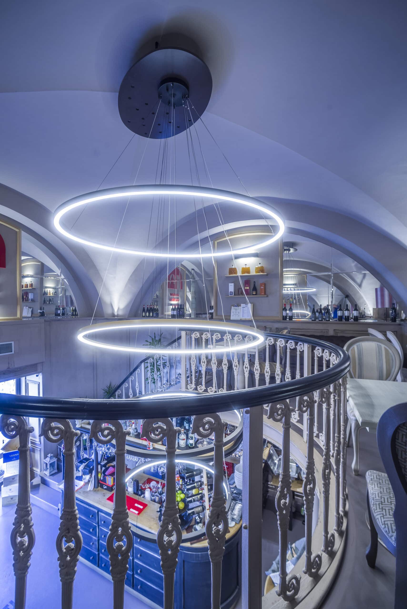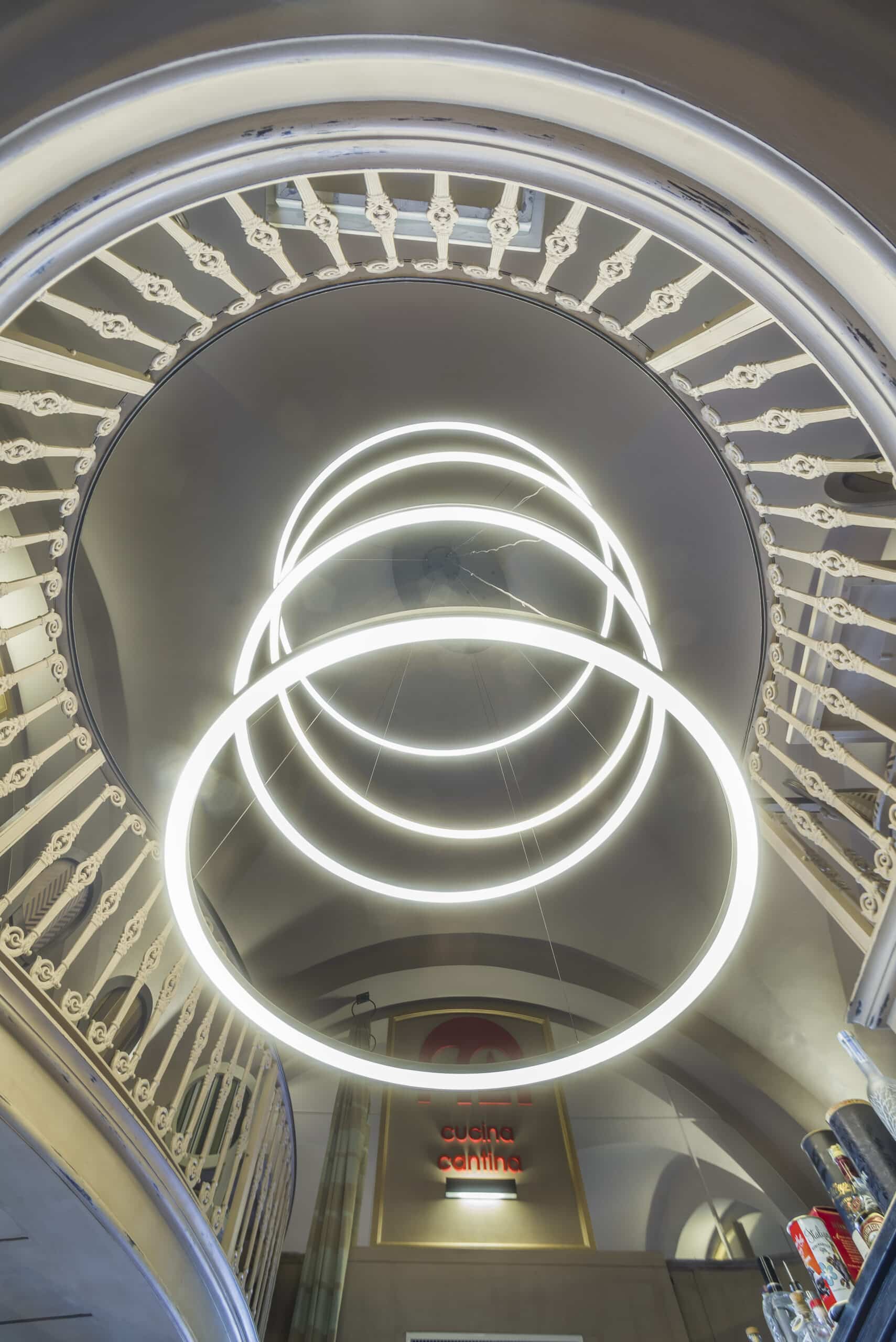 Per il nuovo allestimento della Cucina-cantina a Cefalù è stata scelta l'illuminazione con grande attenzione agli effetti scenografici dove File Flex Circle è protagonista.