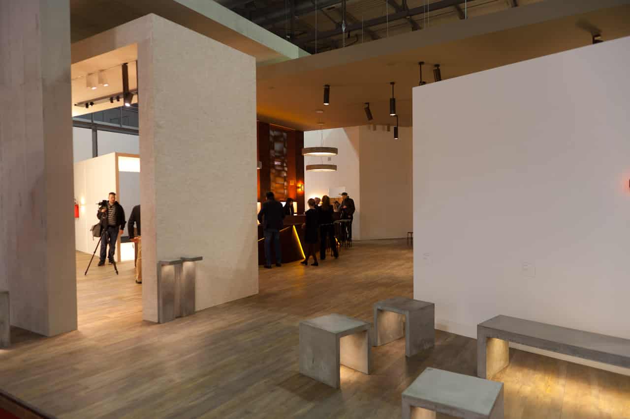 Materia, forma, colore, luce si fondono in un gioco di relazioni elementari. L’architettura torna alla forma più essenziale, più primitiva, più naturale - il trilite - quasi a ricominciare da zero alla ricerca di nuove tecnologie, di nuovi linguaggi, nuove regole compositive, nuove ispirazioni. E’ tuttavia un processo di ri-generazione, non di cancellazione o di negazione. Quello che è stato continua a far parte del nostro bagaglio e di conseguenza a tornare, anche se adeguato, rivisitato. Tre portali si intersecano a diversi livelli, creando spazi di natura e dimensione differenti, in grado di definire ambiti funzionali molto eterogenei seppur in diretta continuità. Nella materia, come nelle forme, si avvia una nuova ricerca di sperimentazione. Metallo, cemento e legno, accolti allo stato grezzo, nella loro naturale imperfezione , divengono espressione del nuovo linguaggio, della ricerca di un essenziale ricco di profondità, emozionale e danno forma a pareti, arredi e perché no, ai prodotti. Nel contesto materico, primitivo, vibrante si innestano quattro scrigni isolati, algidi, asettici, a contenere le collezioni; quasi scrigni di luce nei quali i prodotti sono “congelati” ed esaminati in modo non più emotivo ma tecnico, astratti dal