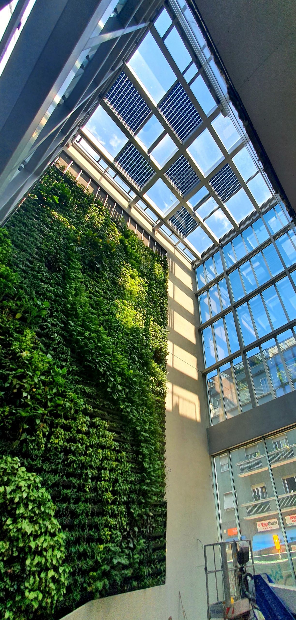All’interno della reception di Viale Padova hanno preso forma due giardini verticali allestiti da Verde Profilo e illuminati dai prodotti Lucifero's, che montano led horticulture adatti al verde e modulabili per la crescita delle piante. Palazzo di Fuoco è stato ristrutturato con lo scopo di raggiungere la LEED (Leadership in Energy and Environmental Design) Platinum Certification e anche per questo sono state incluse le due enormi pareti verdi verticali nel progetto. Una delle due è addirittura la più grande a livello europeo. Lucifero's è stata scelta per illuminare questi spazi verdi indoor grazie all'esperienza e lo studio approfondito della luce horticulture. In particolare sono stati scelti i faretti Semplice da Ø90.