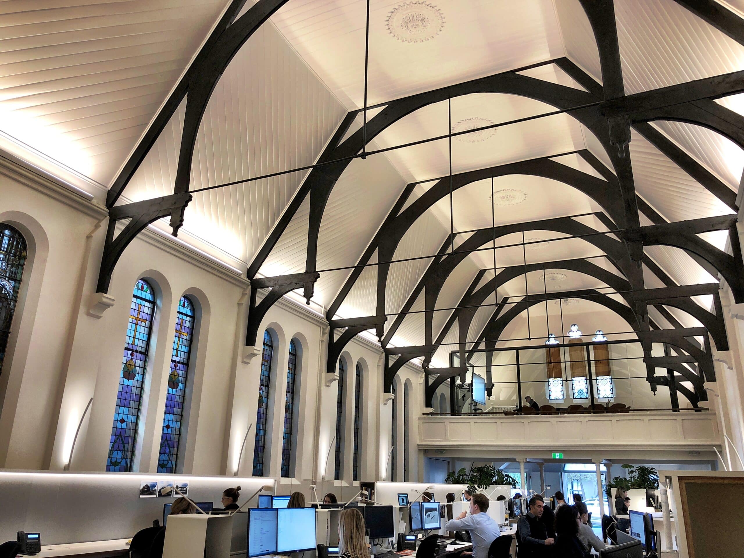 Squillace Architects ha progettato il riadattamento della chiesa Surry Hills Francis De Sales e Presbytery Church lo studio illuminotecnico è stato sviluppato da Gineico Lighting.